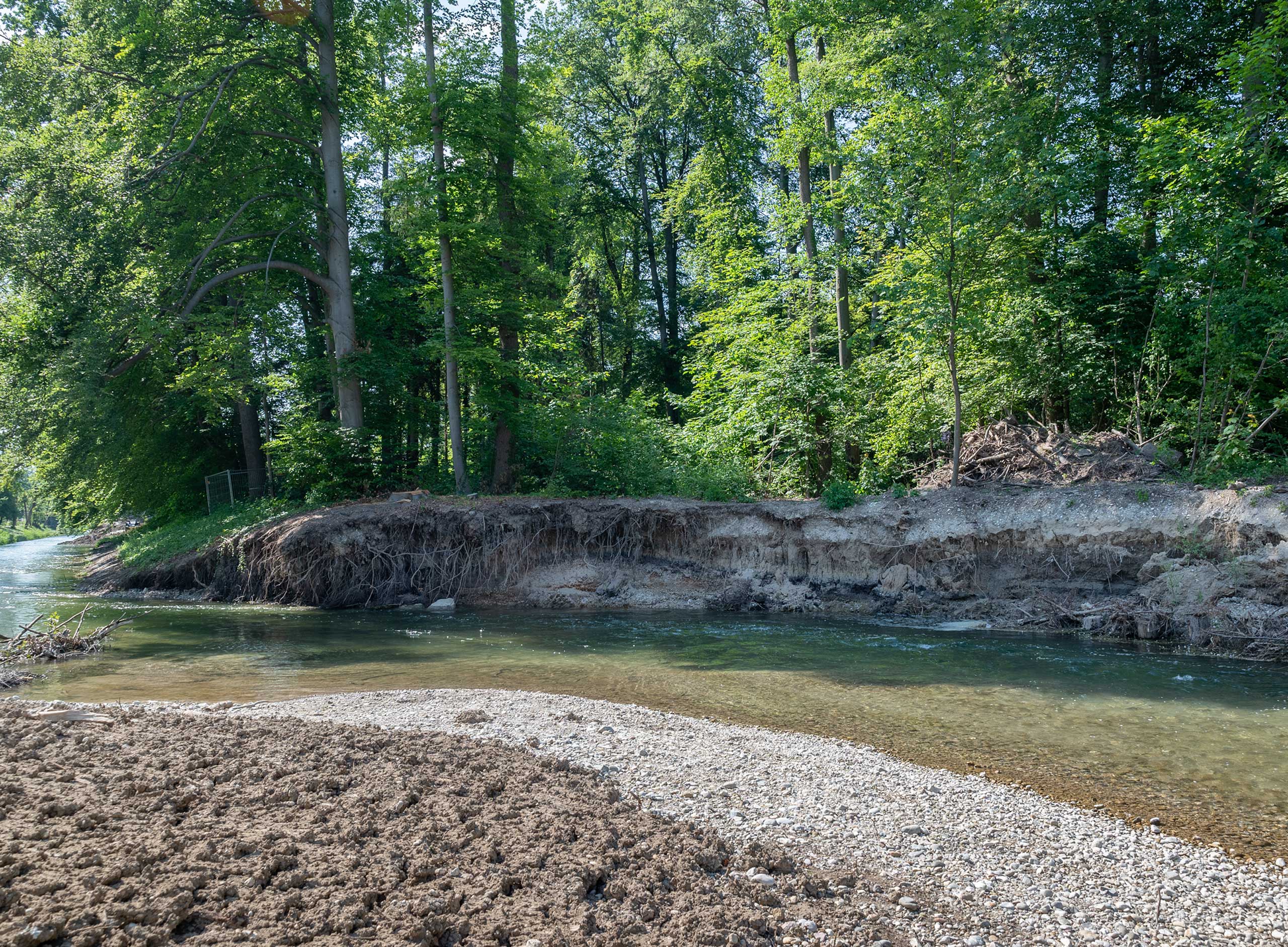 Durch die Aufwertungsmassnahmen wurden Bereiche geschaffen, die für Menschen kaum oder nur schwer zugänglich sind. So wird Biodiversität, Artenförderung, Regenerationsfähigkeit und die Vernetzung von Lebensräumen generell gefördert. Alle Massnahmen zielen auf eine höhere landschaftsräumliche Dynamik ab: hydraulische Kräfte und Veränderungen sowie eine dynamische und prozesshafte Vegetation werden erlebbar. Bestehende Bäume entlang des Uferweges wurden nach Möglichkeit erhalten und dienen unteranderem der Raum- und Strukturbildung für weiter Pflanzungen. Neue artenreiche Wiesen und Hochstaudenflure sind Lebensraum und Futterquelle für diverse Kleintiere.